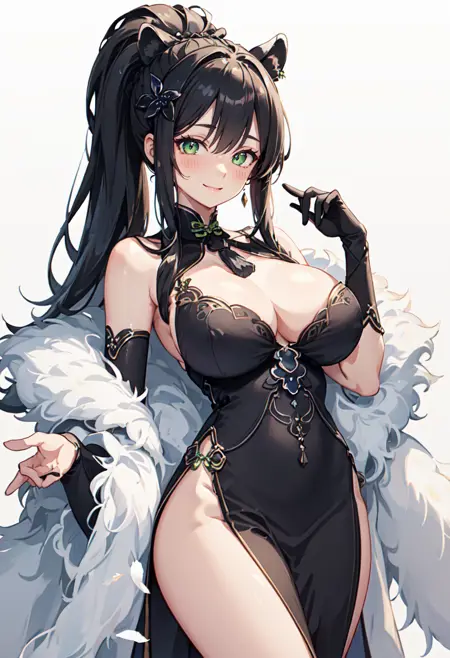 - 已精简的角色标签包括:黑发、长发、动物耳朵、绿眼、老虎耳朵、光环、动物耳绒毛、双马尾、胸部、老虎女孩、额外耳朵。当角色的核心特征(如发色)不够稳定时,您可以在提示词中添加这些标签。