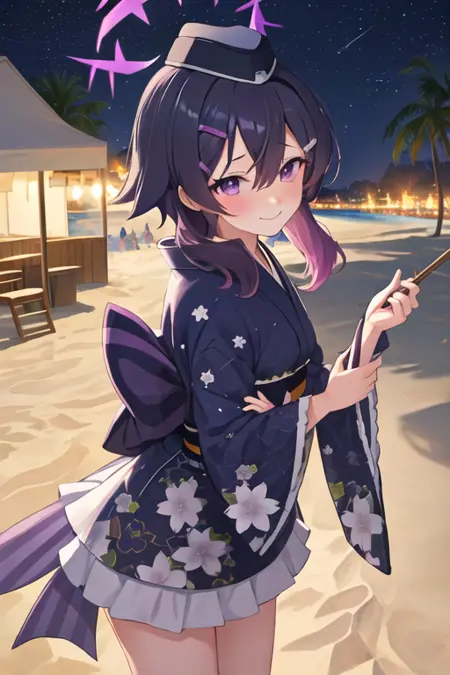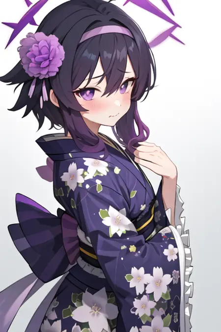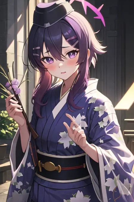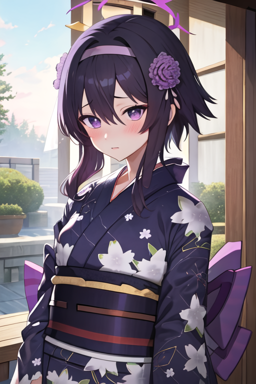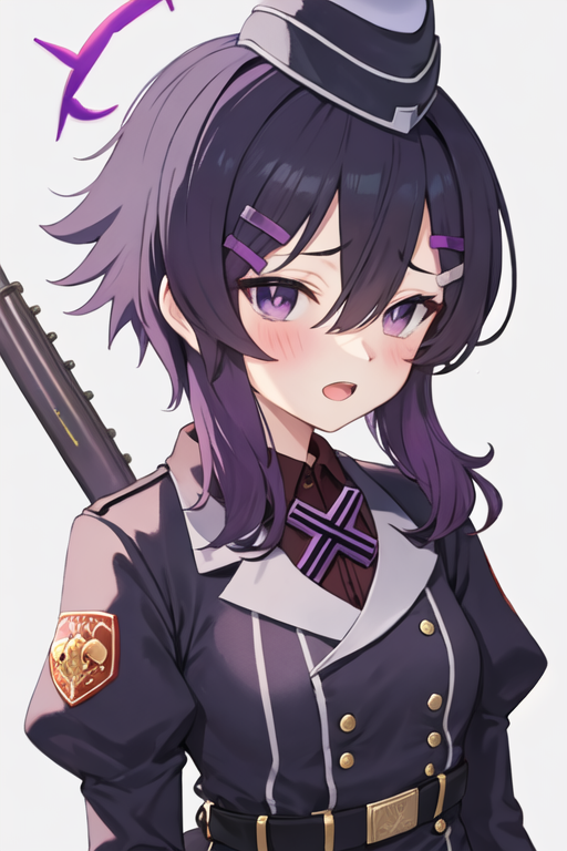 - 필터링된 캐릭터 태그는 보라색 머리카락, 눈 사이의 머리카락, 보라색 눈, 할로, 머리 장식, 헤어클립, 보라색 할로, 모자입니다. 캐릭터의 핵심 특징(예: 머리색)이 안정적이지 않을 때 이 태그를 프롬프트에 추가할 수 있습니다.