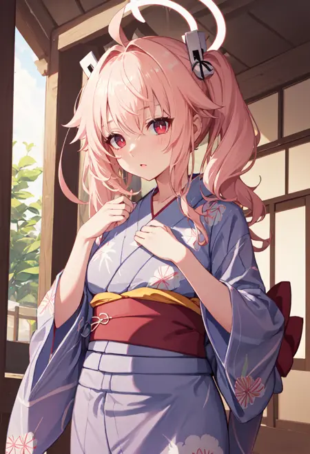 - 축소된 캐릭터 태그는 분홍색 머리카락, 긴 머리카락, 환영, 옆머리 매듭, 아호게, 붉은 눈입니다. 캐릭터의 핵심 특징(예: 머리색)이 안정적이지 않을 때 이 태그를 프롬프트에 추가할 수 있습니다.
