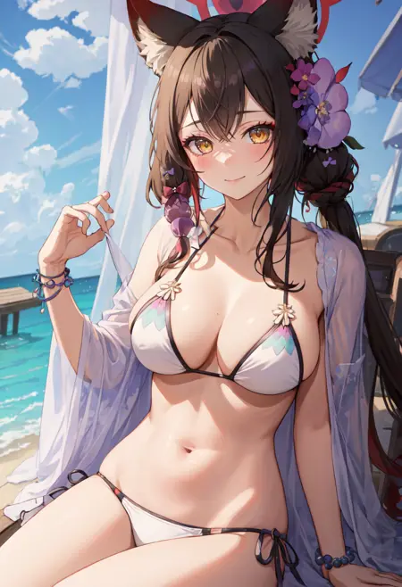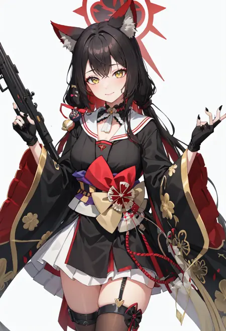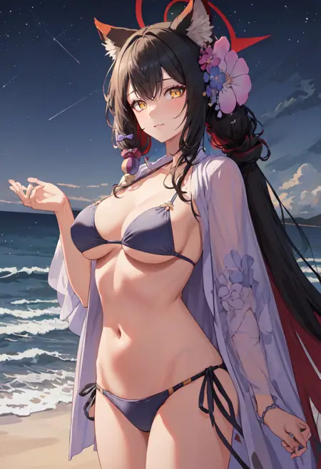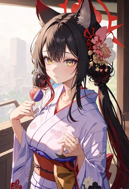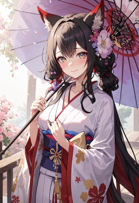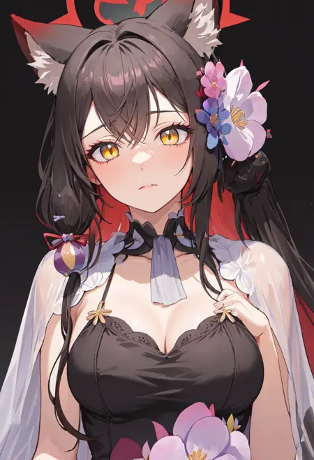 - 削除されたキャラクタータグは以下の通りです:狐の耳、動物の耳、長い髪、動物の耳のふわふわ、狐の女の子、黒髪、黄色い目、ハロー、胸、複数色の髪、大きな胸、狐の尾、尾、髪飾り、赤髪、花の髪飾り、内側の色付き髪、ツートーンの髪。キャラクターの主な特徴(例:髪の色)が安定しない場合、これらのタグをプロンプトに追加してください。