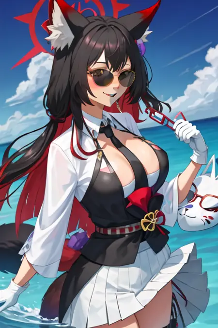 The trigger word is wakamo_bluearchive, and the pruned tags are fox_ears, animal_ears, long_hair, animal_ear_fluff, fox_girl, black_hair, yellow_eyes, halo, breasts, multicolored_hair, large_breasts, fox_tail, tail, hair_ornament, red_hair, hair_flower, colored_inner_hair, two-tone_hair. When some features (e.g. hair color) are not so stable at some times, you can add these them into your prompt.