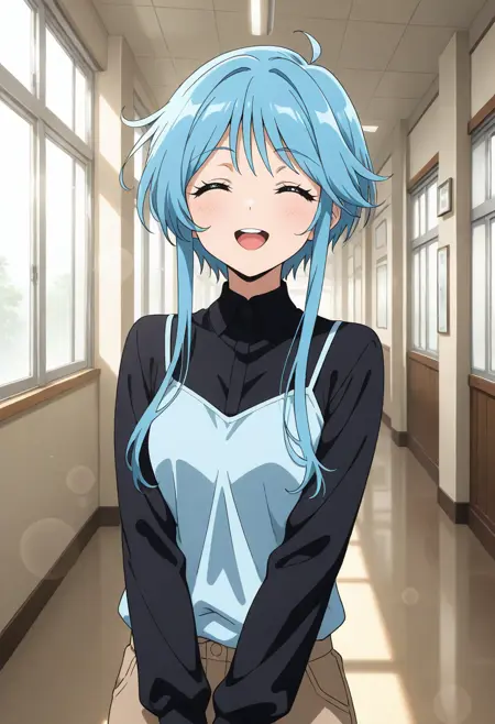 Hair Style etc.(if necessary): 1girl, solo, short hair with long locks, sidelocks, blue hair, blue eyes, bangs
