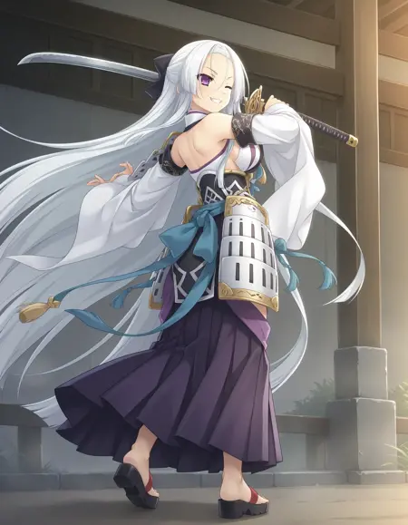 sengoku koihime ~otome kenran sengoku emaki~,kazuha_senkoi,very long hair,white hair,hair between eyes,forehead,large breasts