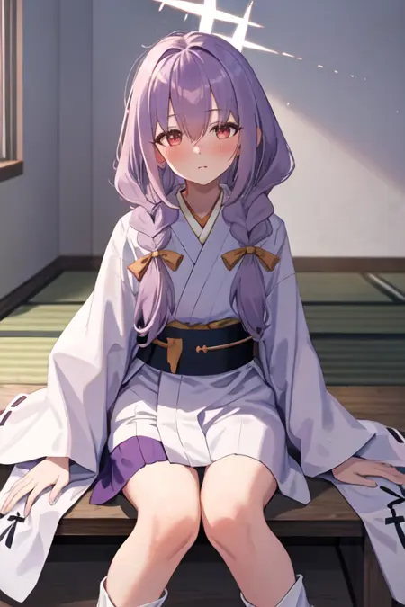 触发词为 atsuko_bluearchive,剪枝标签为 long_hair, purple_hair, red_eyes, halo, braid, twin_braids, hair_between_eyes, bow, hair_bow, breasts。当某些特征(例如发色)在某些情况下不够稳定时,您可以将这些标签加入提示词中。