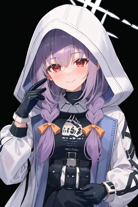 - The pruned character tags are long hair, purple hair, red eyes, halo, braid, twin braids, hair between eyes, bow, hair bow, breasts. You can add them into prompts when core features (e.g. hair color) of character is not so stable.