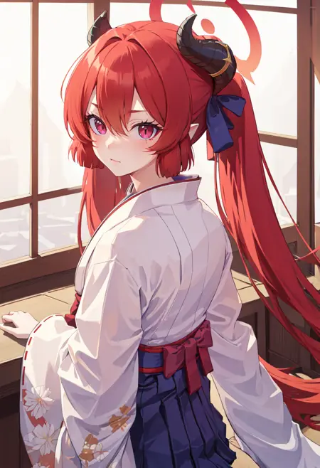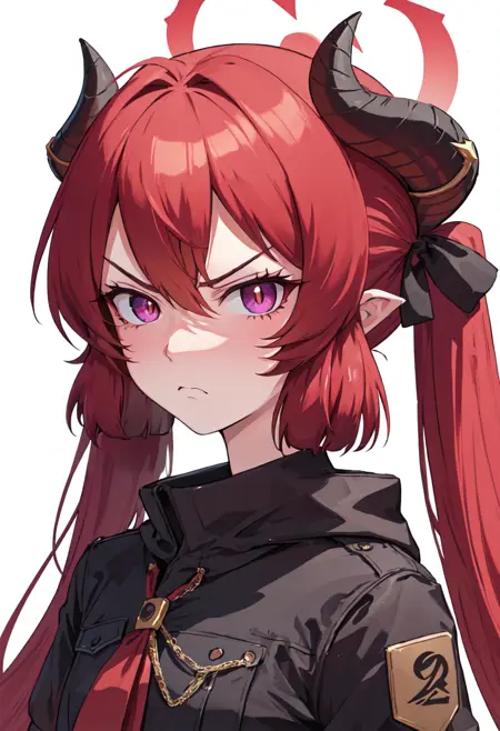 触发词为 junko_bluearchive,剪枝标签为 red_hair, horns, long_hair, twintails, halo, demon_horns, pointy_ears, wings, hair_between_eyes, demon_wings, very_long_hair, black_horns, low_wings, purple_eyes, red_eyes, ribbon。当某些特征(如发色)在某些时候不够稳定时,您可以在提示词中添加这些标签。