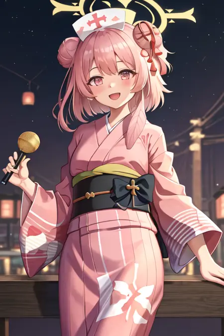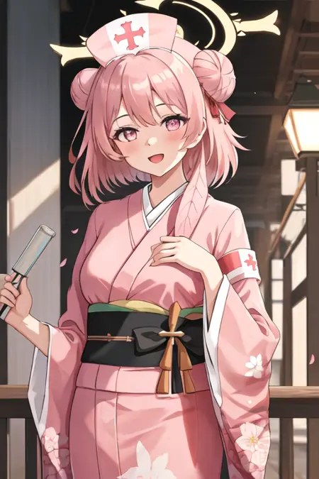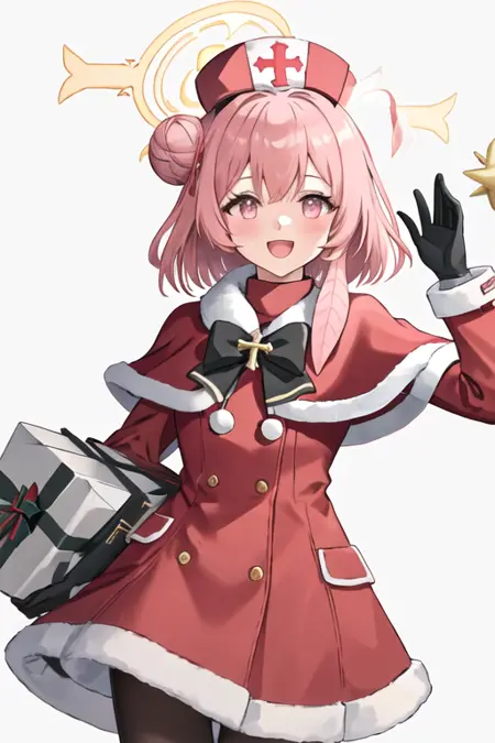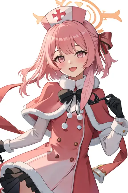 - The pruned character tags are pink hair, halo, pink eyes, hat, nurse cap, ribbon, one side up, yellow halo, hair bun, breasts. You can add them into prompts when core features (e.g. hair color) of character is not so stable.