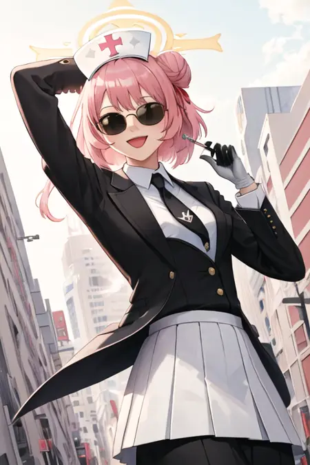 The trigger word is serina_bluearchive, and the pruned tags are pink_hair, halo, pink_eyes, hat, nurse_cap, ribbon, one_side_up, yellow_halo, hair_bun, breasts. When some features (e.g. hair color) are not so stable at some times, you can add these them into your prompt.