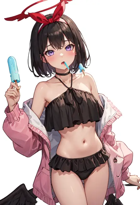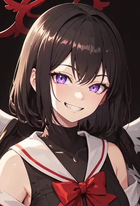 - 削除されたキャラクタータグは、黒髪、短髪、ハロー、紫目、赤ハロー、翼、黒翼、羽翼、髪飾り、リボンです。キャラクターの主要な特徴(例:髪の色)が安定しない場合には、これらのタグをプロンプトに追加してください。