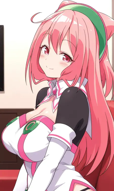 외모: HackaDoll2Go, 분홍색 머리, 긴 머리, 앞머리, 헤어밴드, 큰 가슴