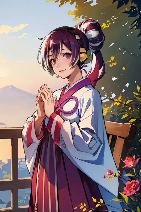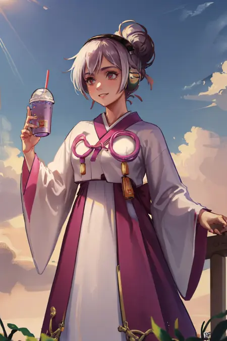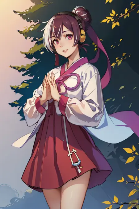 デフォルトの服: ヘッドフォン、韓国風服、白い着物、紫のスカート
