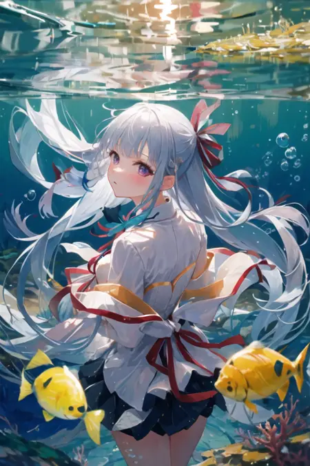 (2girls:1.4), green eyes blonde short hair and another purple eyes silver long hair, lora:euphyllia\_magenta:0.45 lora:anisphia\_wynn\_palettia-v2:0.5