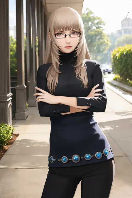 默认装扮: 眼镜,高领毛衣,长袖,黑色长裤