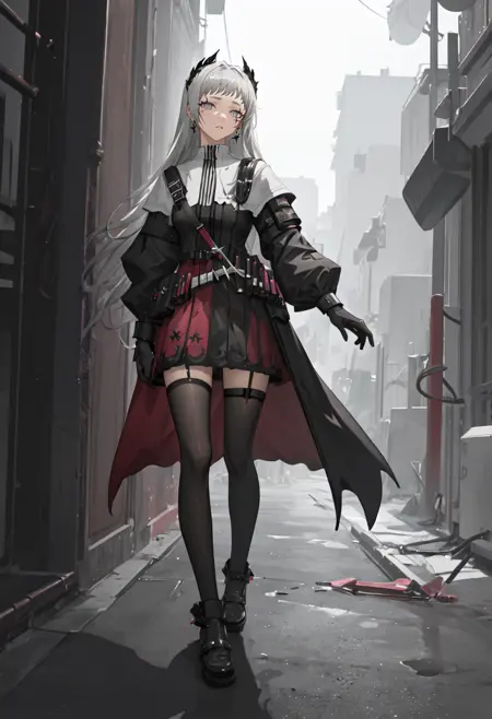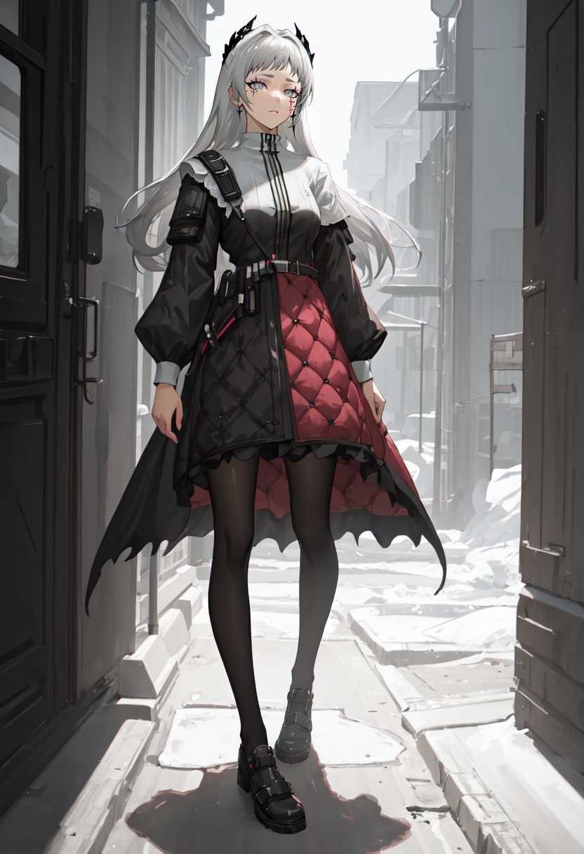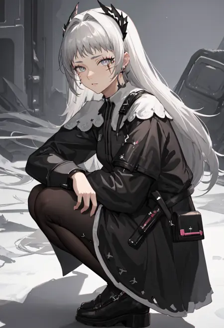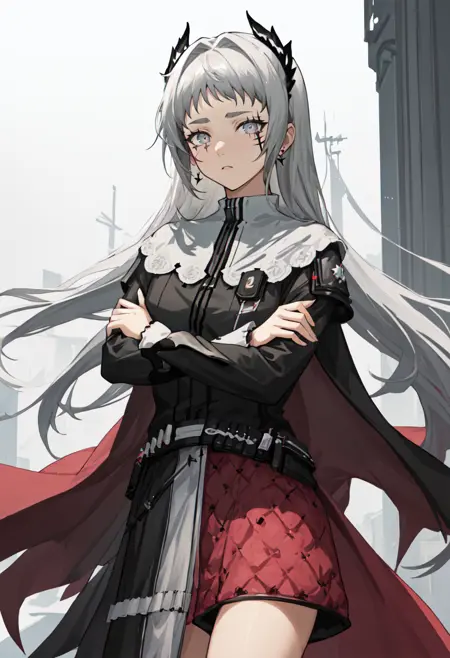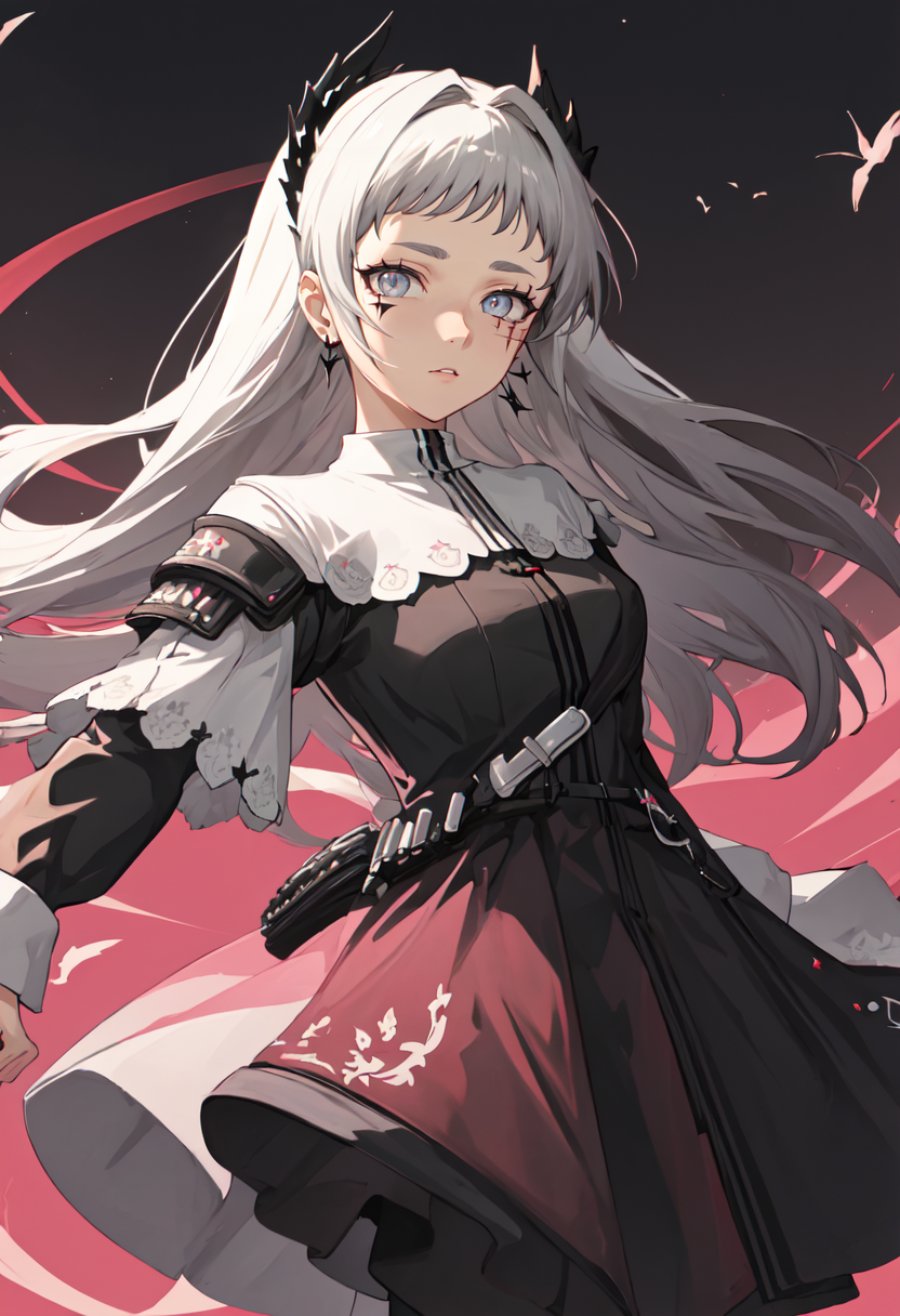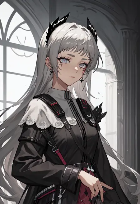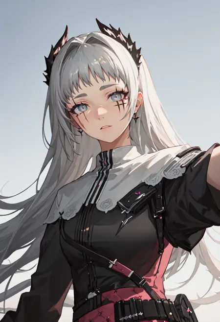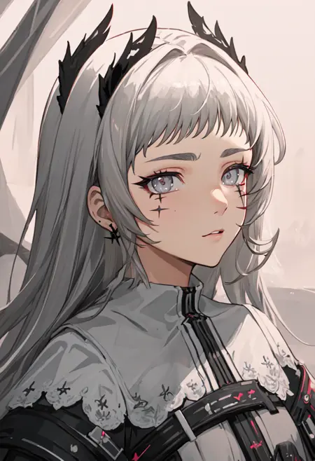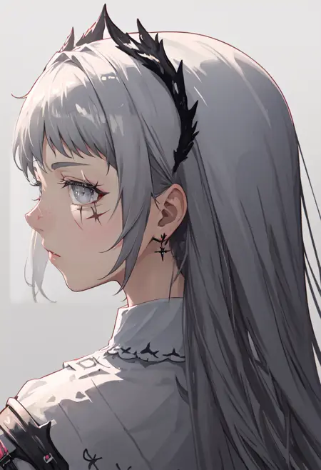 - 필터링된 캐릭터 태그는 회색 머리카락, 날개, 머리 날개, 긴 머리카락, 회색 눈, 눈을 가로지르는 흉터, 귀걸이, 얼굴 흉터, 매우 긴 머리카락입니다. 캐릭터의 핵심 특징(예: 머리카락 색상)이 안정적이지 않을 경우 이 태그들을 프롬프트에 추가할 수 있습니다.