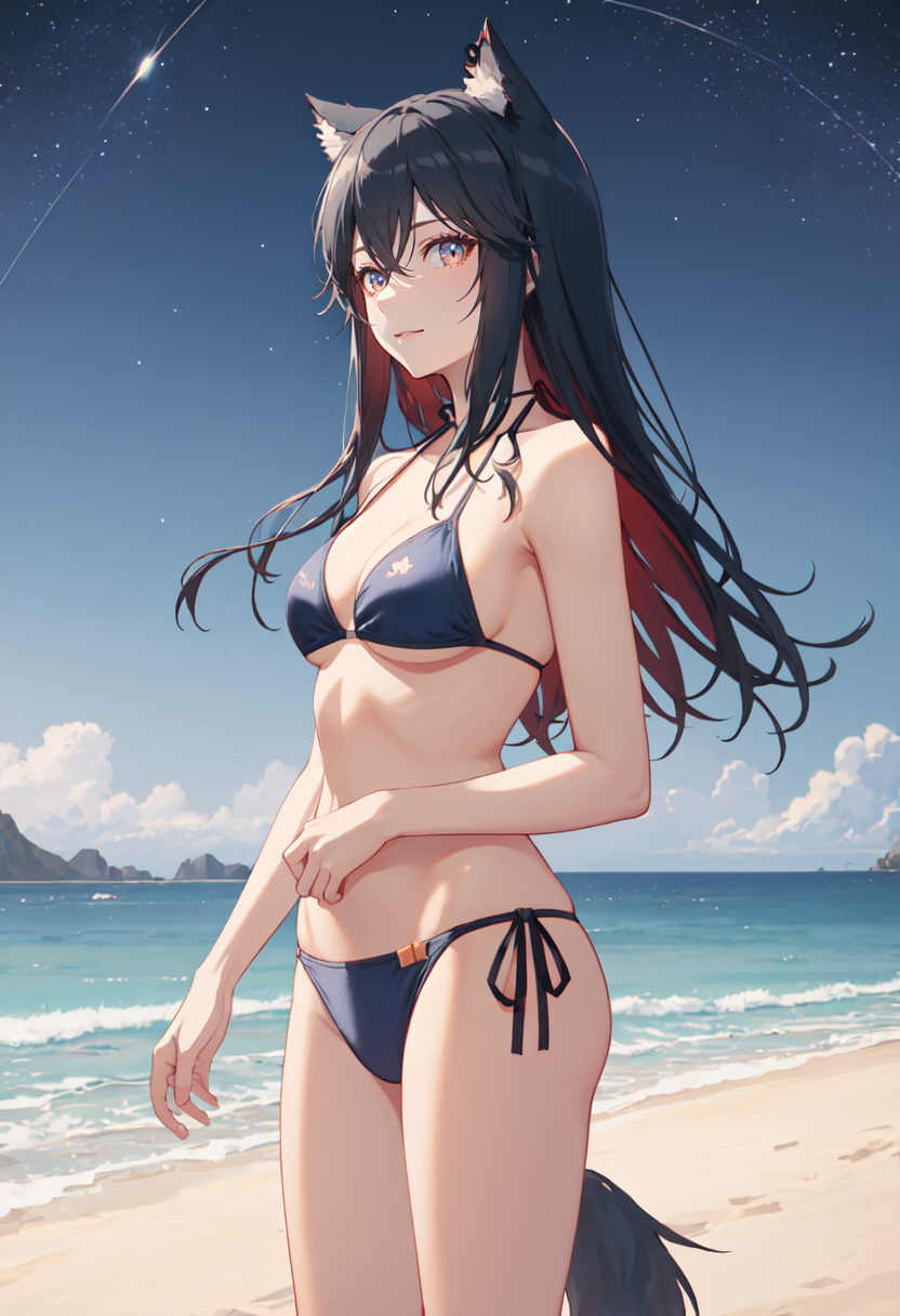 - 削除されたキャラクタータグは以下の通りです:動物の耳、黒髪、長い髪、オオカミの耳、動物の耳のふわふわ、目の間に髪の毛、複色の髪、赤髪、オオカミガール、胸、二色の髪、尾、オオカミの尾、内側の色付き髪。これらのタグは、キャラクターの主な特徴(例:髪の色)が安定しない場合にプロンプトに追加してください。