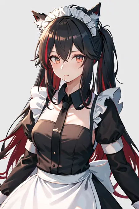 - 经过精简的字符标签包括:动物耳朵、黑发、长发、狼耳、动物耳朵绒毛、眼睛之间的头发、多色发、红发、狼娘、胸部、双色发、尾巴、狼尾、有颜色的内发。当角色的核心特征(如发色)不够稳定时,您可以在提示词中添加这些标签。