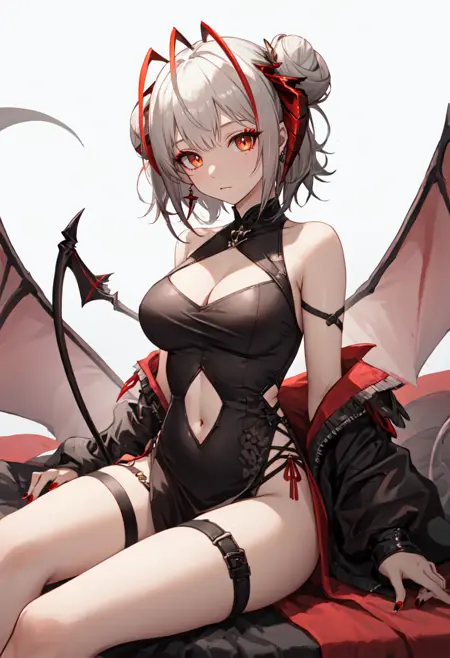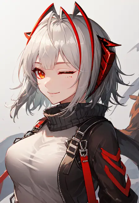 触发词为 w_arknights,精简标签为 horns, short_hair, grey_hair, breasts, demon_horns, medium_breasts, red_eyes, ahoge, tail, multicolored_hair, orange_eyes。当某些特征(例如发色)有时不够稳定时,您可以将这些标签添加到提示词中。
