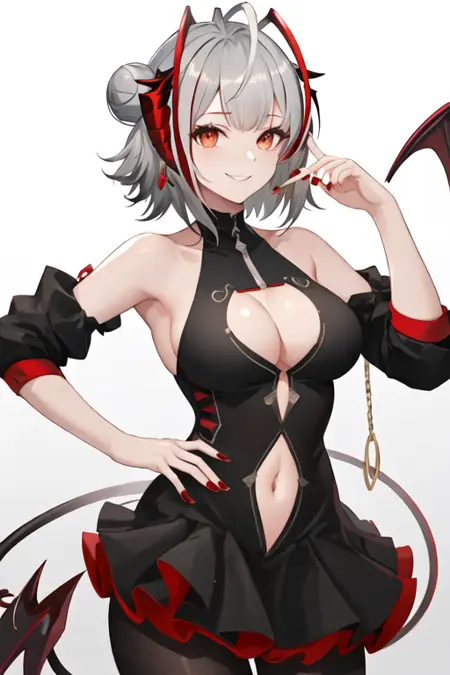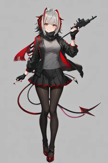 触发词为 w_arknights,精简标签为 horns, short_hair, grey_hair, breasts, demon_horns, medium_breasts, red_eyes, ahoge, tail, multicolored_hair, orange_eyes。当某些特征(例如发色)有时不够稳定时,您可以将这些标签添加到提示词中。