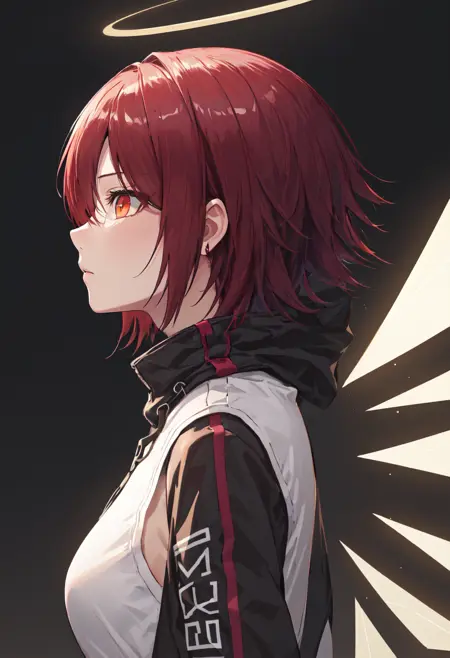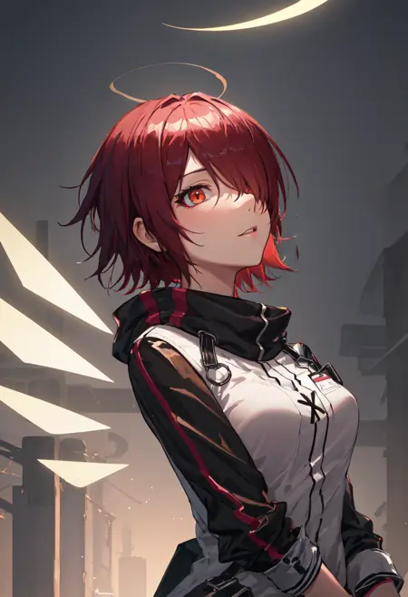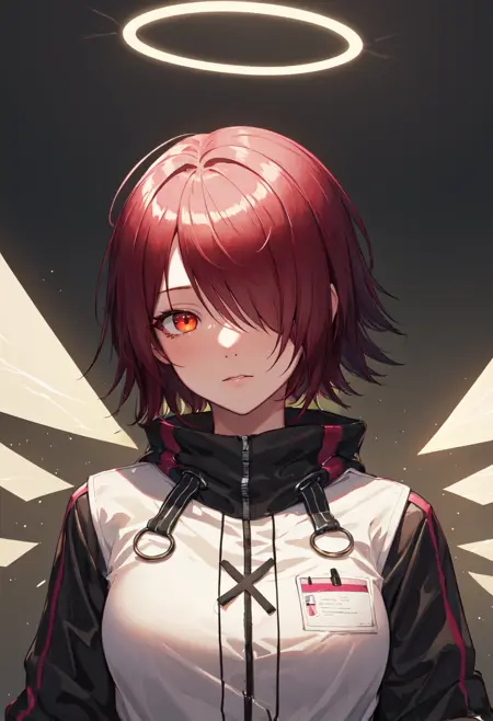 - 축소된 캐릭터 태그는 빨간 머리, 할로, 단발, 날개, 한쪽 눈 위의 머리카락, 붉은 눈, 분리된 날개, 주황색 눈, 가슴입니다. 캐릭터의 핵심 특징(예: 머리 색상)이 안정적이지 않을 때 이 태그를 프롬프트에 추가할 수 있습니다.