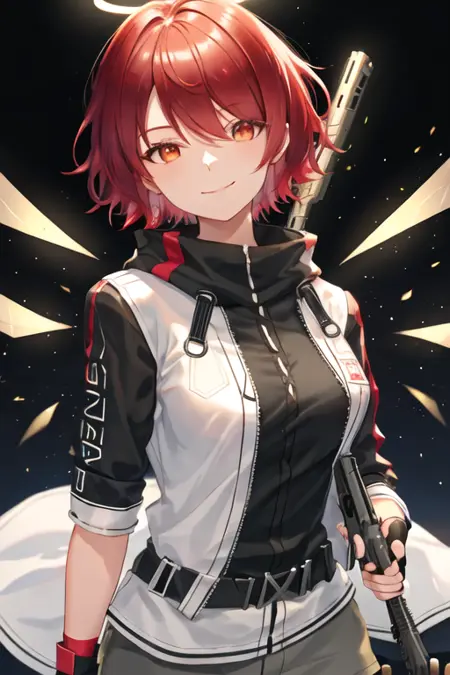 触发词为 exusiai_arknights,精简标签为 red_hair, halo, short_hair, wings, hair_over_one_eye, red_eyes, detached_wings, orange_eyes, breasts。当某些特征(如发色)在某些时候不够稳定时,您可以将这些标签添加到提示词中。