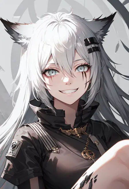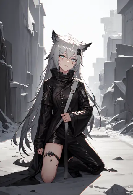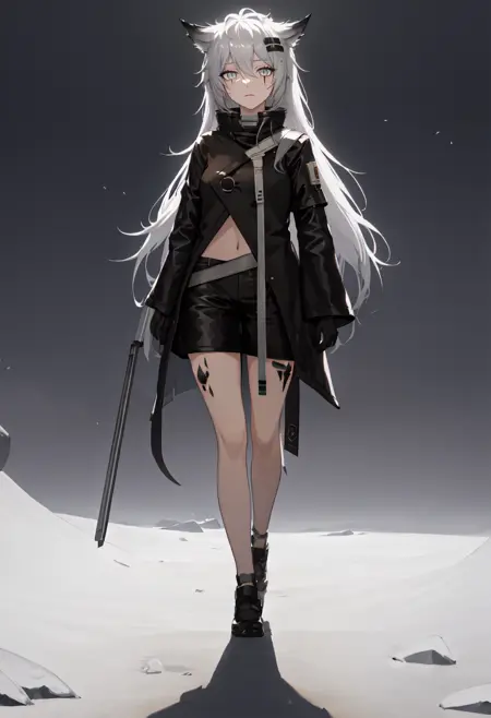 トリガーワードはlappland_arknights、削除されたタグはanimal_ears, wolf_ears, long_hair, scar_across_eye, hair_ornament, hairclip, grey_hair, hair_between_eyes, scar_on_face, grey_eyes, white_hair, very_long_hair, tailです。ある期間、特定の特徴(例:髪の色)が安定しない場合、これらのタグをプロンプトに追加できます。