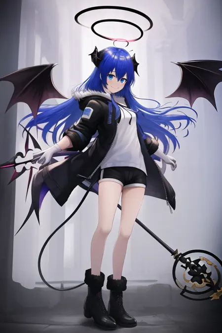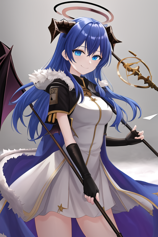 触发词为 mostima_arknights,剪枝标签为 blue_hair, long_hair, horns, blue_eyes, halo, demon_horns, wings, detached_wings, hair_between_eyes。当某些特征(如发色)有时不够稳定时,您可以将这些标签添加到您的提示词中。