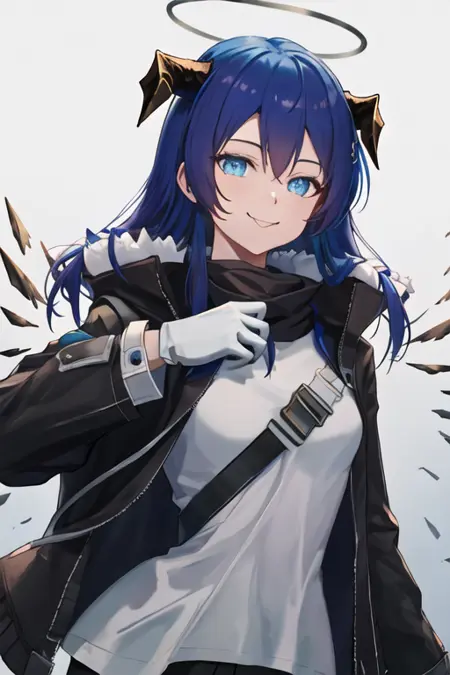 触发词为 mostima_arknights,剪枝标签为 blue_hair, long_hair, horns, blue_eyes, halo, demon_horns, wings, detached_wings, hair_between_eyes。当某些特征(如发色)有时不够稳定时,您可以将这些标签添加到您的提示词中。