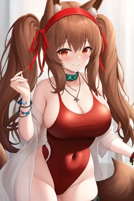 - 축소된 캐릭터 태그는 동물 귀, 갈색 머리카락, 긴 머리카락, 여우 귀, 트윈테일, 헤어밴드, 빨간 헤어밴드, 빨간 눈, 가슴입니다. 캐릭터의 핵심 특징(예: 머리카락 색상)이 안정적이지 않을 때 이 태그를 프롬프트에 추가할 수 있습니다.