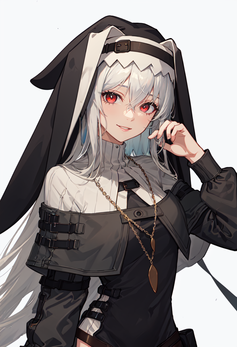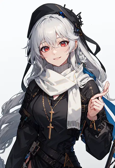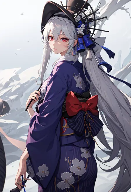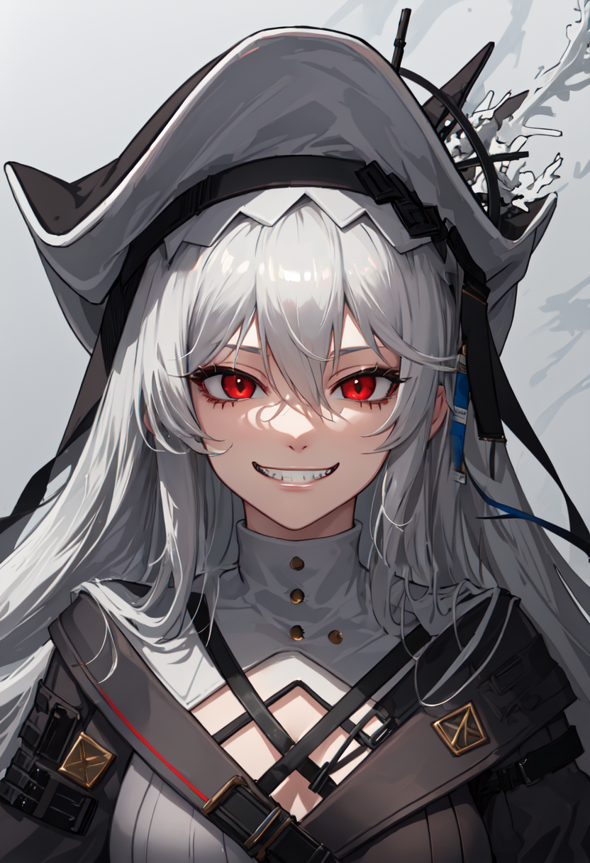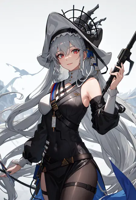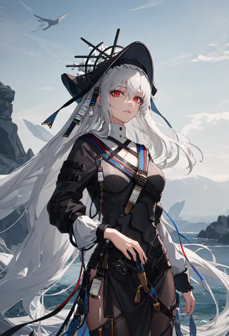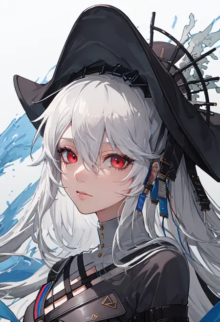 - The pruned character tags are long hair, red eyes, grey hair, hair between eyes, black headwear, very long hair, breasts, white hair, hat. You can add them into prompts when core features (e.g. hair color) of character is not so stable.