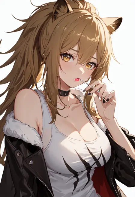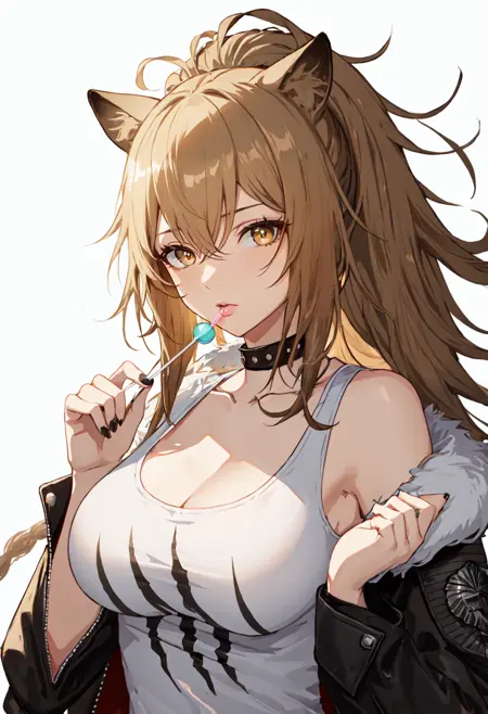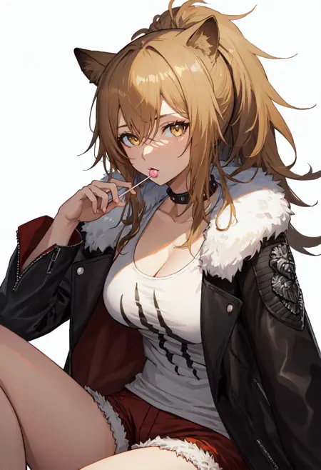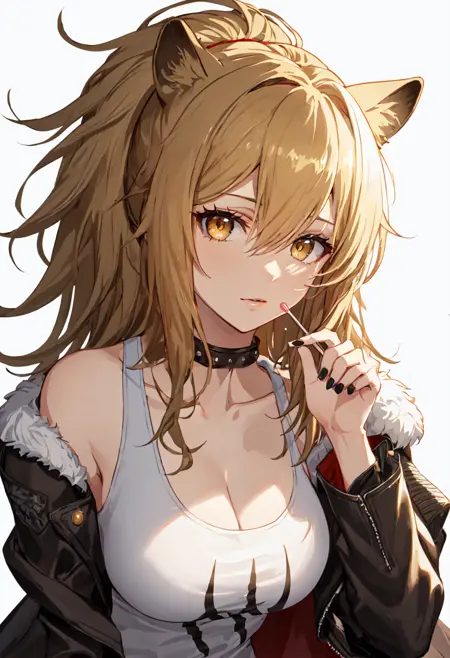 - 정제된 캐릭터 태그는 사자 귀, 동물 귀, 긴 머리카락, 가슴, 꼬리辫, 금발, 갈색 눈, 큰 가슴, 눈 사이 머리카락, 갈색 머리카락, 꼬리, 사자 꼬리, 노란색 눈입니다. 캐릭터의 핵심 특징(예: 머리카락 색상)이 안정적이지 않을 경우, 이 태그들을 프롬프트에 추가할 수 있습니다.