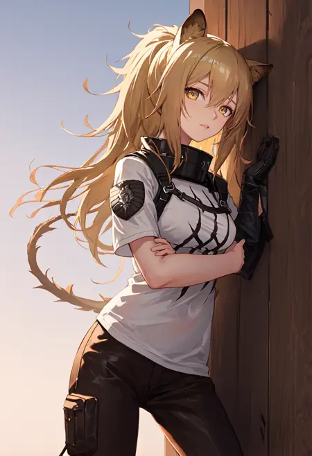 트리거 단어는 siege_arknights이며, 정제된 태그는 lion_ears, animal_ears, long_hair, breasts, ponytail, blonde_hair, brown_eyes, large_breasts, hair_between_eyes, brown_hair, tail, lion_tail, yellow_eyes입니다. 어떤 특징(예: 머리카락 색상)이 불안정할 경우, 이 태그들을 프롬프트에 추가하세요.