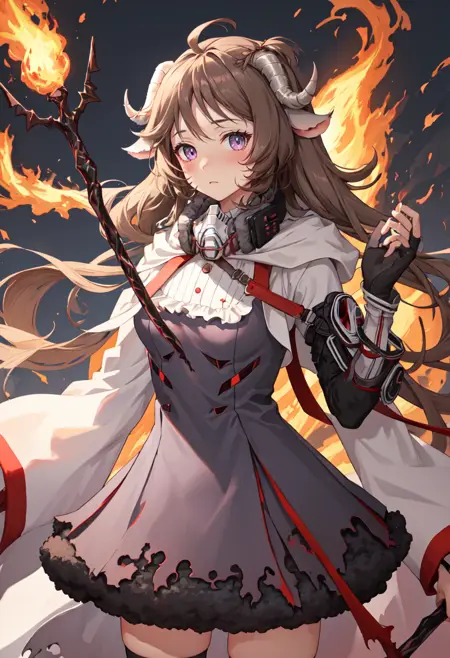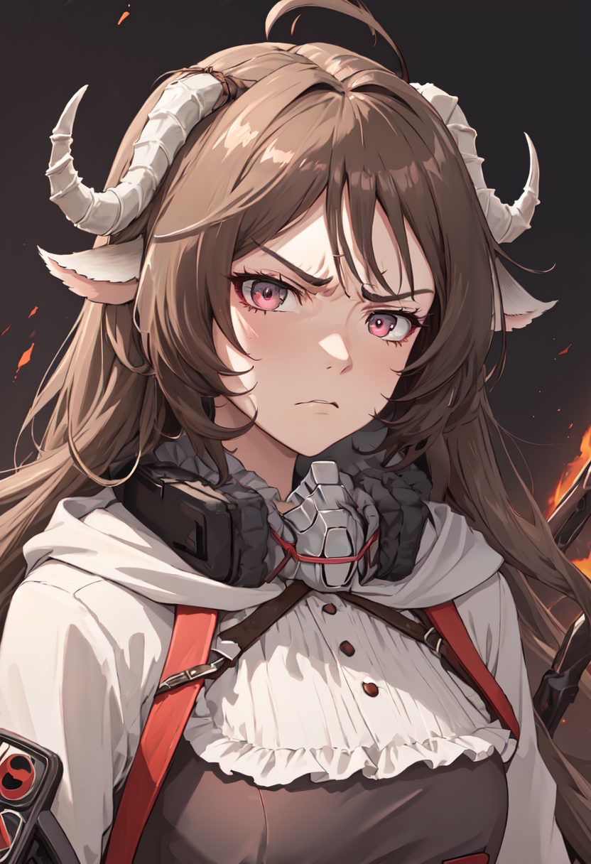 触发词为 eyjafjalla_arknights,剪枝标签为 brown_hair, horns, animal_ears, long_hair, sheep_horns, sheep_ears, ahoge, red_eyes, sheep_girl。当某些特征(如发色)在某些时候不够稳定时,您可以将这些标签添加到提示词中。