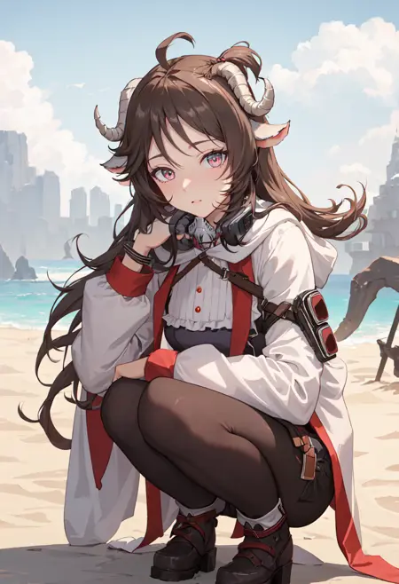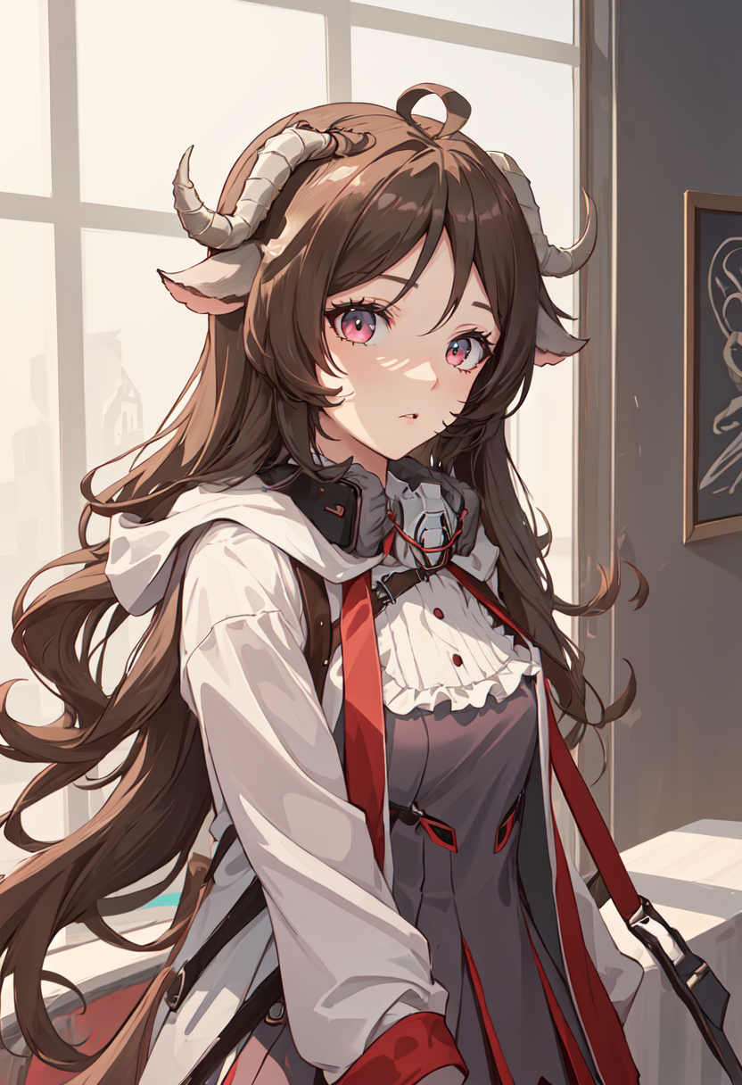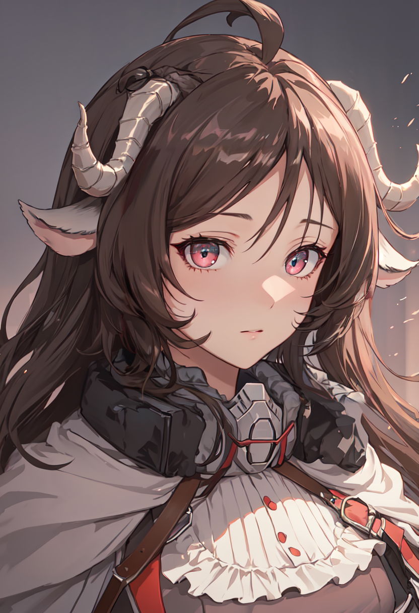 - 经过剪枝的角色标签为:棕色头发、角、动物耳朵、长发、羊角、羊耳、ahoge、红眼睛、羊少女。当角色的核心特征(例如发色)不够稳定时,您可以在提示词中添加这些标签。