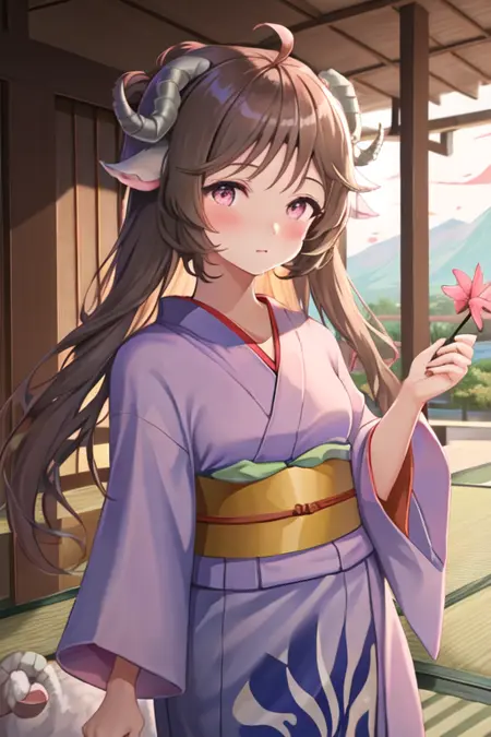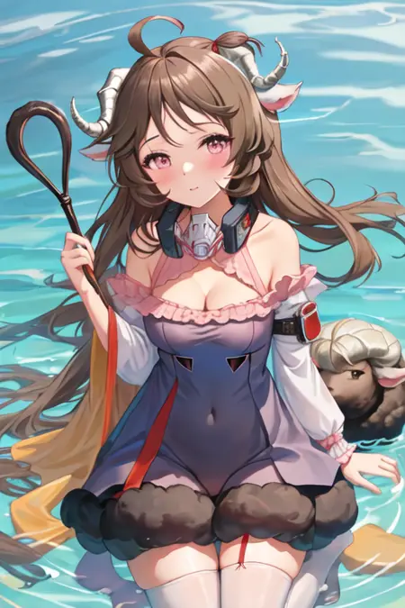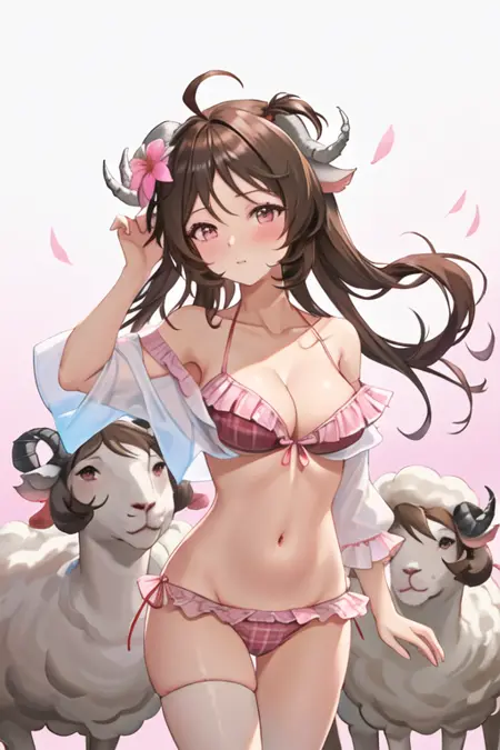 - The pruned character tags are brown hair, horns, animal ears, long hair, sheep horns, sheep ears, ahoge, red eyes, sheep girl. You can add them into prompts when core features (e.g. hair color) of character is not so stable.