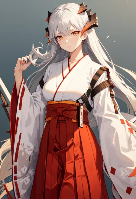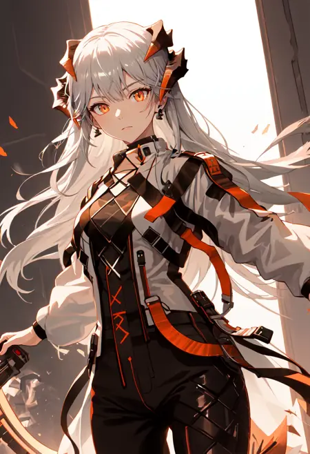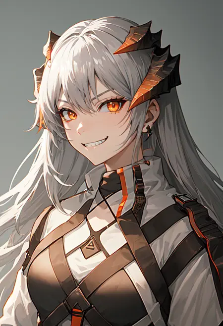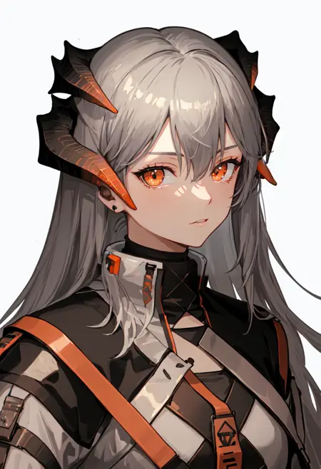 - 축소된 캐릭터 태그는 뿔, 긴 머리카락, 드래곤 뿔, 회색 머리카락, 주황색 눈, 가슴, 귀걸이, 꼬리입니다. 캐릭터의 핵심 특징(예: 머리카락 색상)이 안정적이지 않을 때这些 태그를 프롬프트에 추가할 수 있습니다.