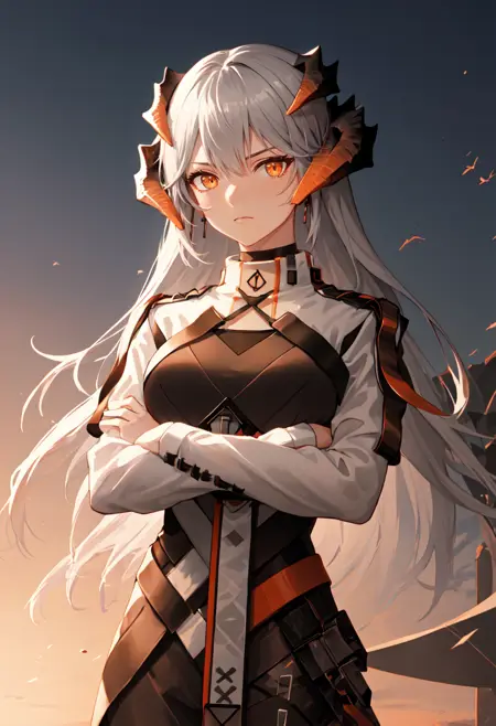 트리거 단어는 saria_arknights이며, 축소된 태그는 horns, long_hair, dragon_horns, grey_hair, orange_eyes, breasts, earrings, tail입니다. 어떤 특징(예: 머리카락 색상)이 불안정할 때 이 태그들을 프롬프트에 추가할 수 있습니다.