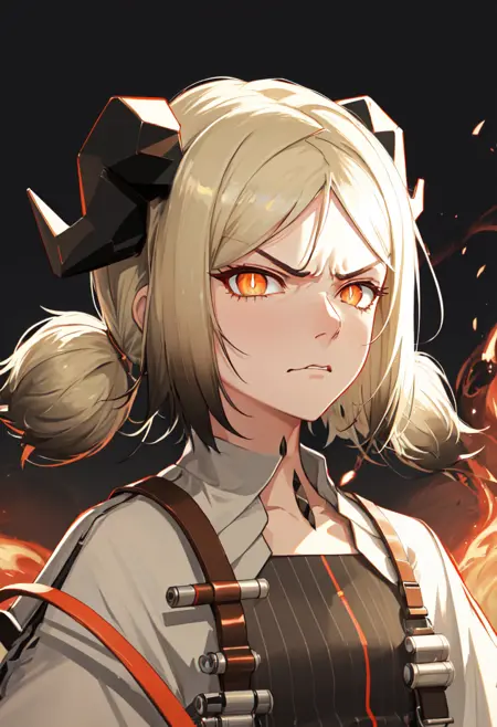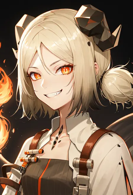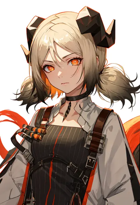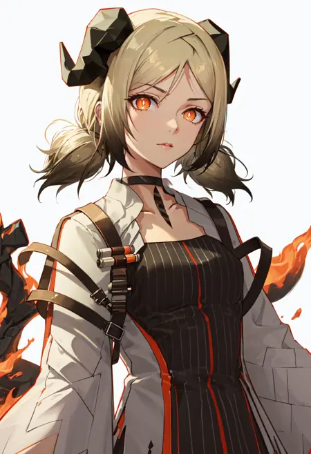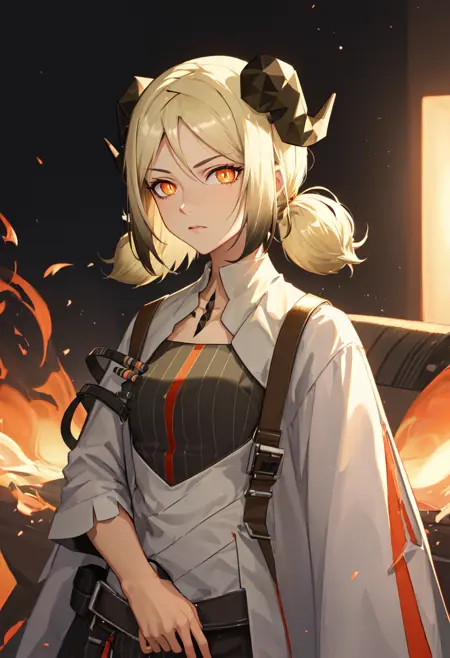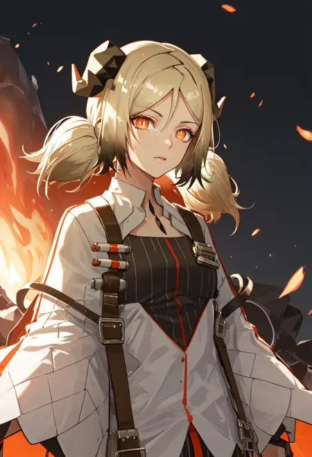 トリガーワードはifrit_arknights、削除されたタグはhorns, blonde_hair, orange_eyes, twintails, demon_horns, short_hair, short_twintailsです。一部の特徴(例:髪の色)が安定しない場合、これらをプロンプトに追加してください。