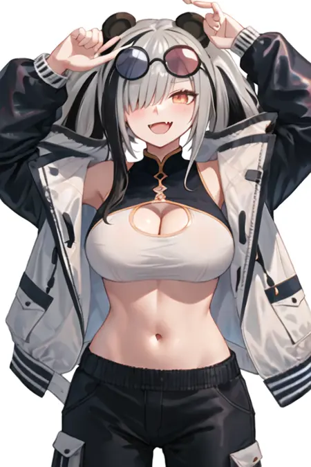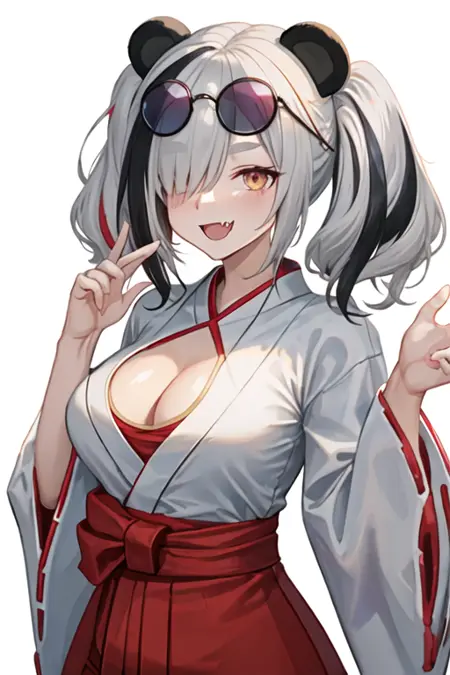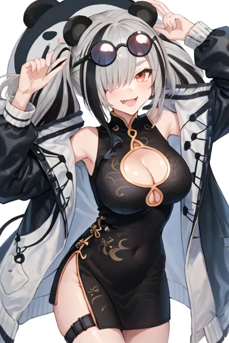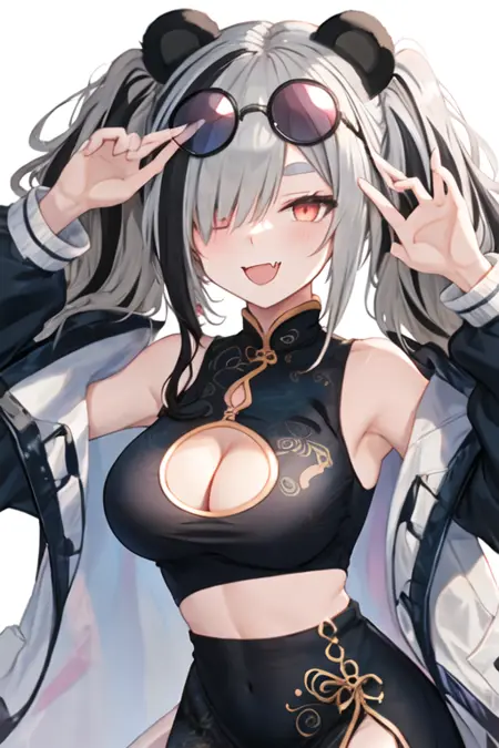 - The pruned character tags are animal ears, multicolored hair, black hair, grey hair, streaked hair, breasts, panda ears, twintails, large breasts, sunglasses, hair over one eye, long hair, eyewear on head, two-tone hair, fang, round eyewear, red eyes. You can add them into prompts when core features (e.g. hair color) of character is not so stable.