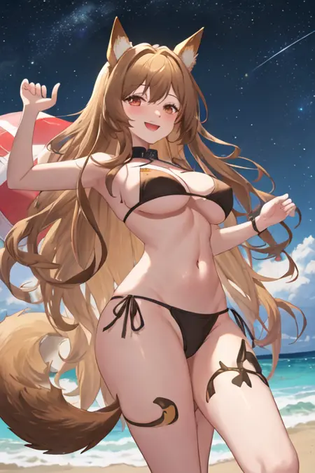 - 필터링된 캐릭터 태그는 동물 귀, 긴 머리카락, 개 귀, 갈색 머리, 개 소녀, 붉은 눈, 가슴, 매우 긴 머리카락, 꼬리, 눈 사이의 머리카락, 개 꼬리, 송곳니입니다. 캐릭터의 핵심 특징(예: 머리카락 색상)이 불안정할 때 이 태그를 프롬프트에 추가할 수 있습니다.