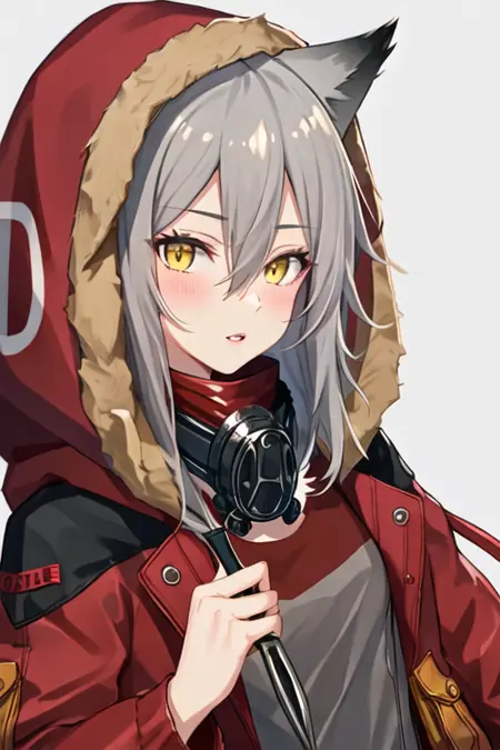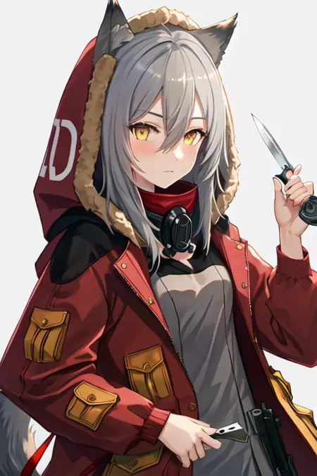 트리거 단어는 projekt_red_arknights이며, 정제된 태그는 animal_ears, wolf_ears, grey_hair, hair_between_eyes, wolf_girl, yellow_eyes, tail, wolf_tail, long_hair, breasts입니다. 어떤 특징(예: 머리카락 색상)이 일정 시점에서 안정적이지 않을 때, 이 태그들을 프롬프트에 추가할 수 있습니다.