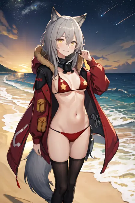 - 정제된 캐릭터 태그는 동물 귀, 늑대 귀, 회색 머리카락, 눈 사이의 머리카락, 늑대 소녀, 노란 눈, 꼬리, 늑대 꼬리, 긴 머리, 가슴입니다. 캐릭터의 핵심 특징(예: 머리카락 색상)이 안정적이지 않을 때 이러한 태그를 프롬프트에 추가할 수 있습니다.