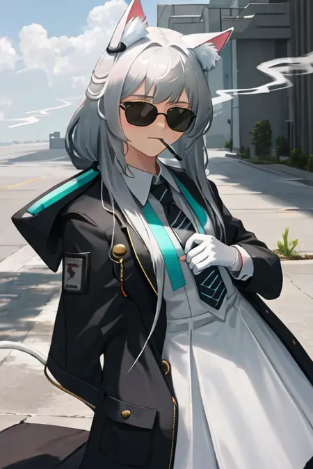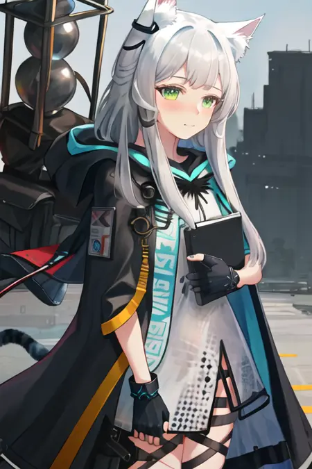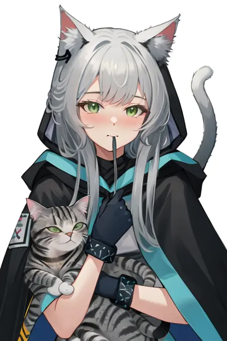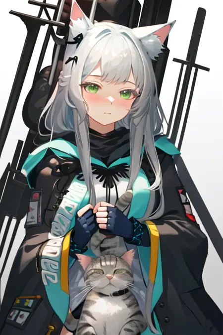 トリガー語は rosmontis_arknights であり、削除されたタグは animal_ears, cat_ears, long_hair, cat_girl, animal_ear_fluff, green_eyes, grey_hair, white_hair, tail, cat_tail です。ある特徴(例:髪の色)が安定しない場合、これらをプロンプトに追加してください。