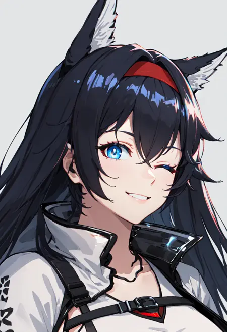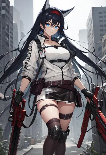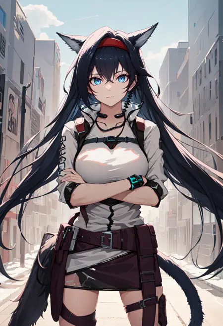 触发词为 blaze_arknights,精简标签为 animal_ears, long_hair, cat_ears, black_hair, blue_eyes, hairband, red_hairband, breasts, very_long_hair, large_breasts, tail, cat_tail, cat_girl, hair_between_eyes。当某些特征(如发色)有时不够稳定时,您可以在提示词中添加这些标签。
