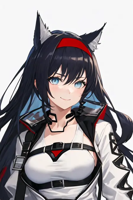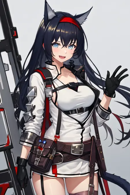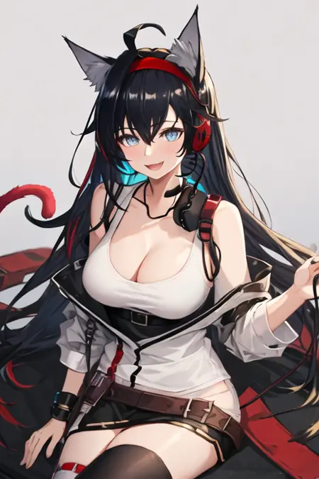 触发词为 blaze_arknights,精简标签为 animal_ears, long_hair, cat_ears, black_hair, blue_eyes, hairband, red_hairband, breasts, very_long_hair, large_breasts, tail, cat_tail, cat_girl, hair_between_eyes。当某些特征(如发色)有时不够稳定时,您可以在提示词中添加这些标签。
