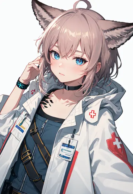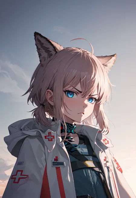 트리거워드는 sussurro_arknights이며, 축소된 태그는 animal_ears, fox_ears, blue_eyes, fox_girl, ahoge, short_hair, tail, fox_tail, brown_hair, animal_ear_fluff입니다. 어떤 특징(예: 머리색)이 불안정할 때, 이 태그들을 프롬프트에 추가하세요.