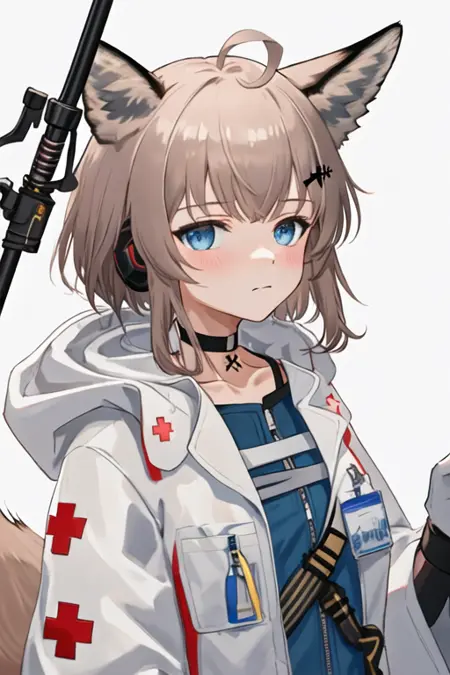 트리거워드는 sussurro_arknights이며, 축소된 태그는 animal_ears, fox_ears, blue_eyes, fox_girl, ahoge, short_hair, tail, fox_tail, brown_hair, animal_ear_fluff입니다. 어떤 특징(예: 머리색)이 불안정할 때, 이 태그들을 프롬프트에 추가하세요.