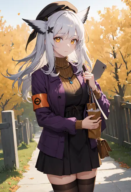 The trigger word is ptilopsis_arknights, and the pruned tags are owl_ears, orange_eyes, white_hair, long_hair, grey_hair, yellow_eyes, breasts. When some features (e.g. hair color) are not so stable at some times, you can add these them into your prompt.
