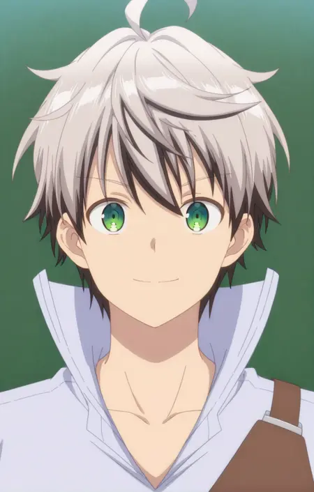 rein, rein shroud, grey hair, streaked hair, black hair, green eyes, bangs, ahoge,