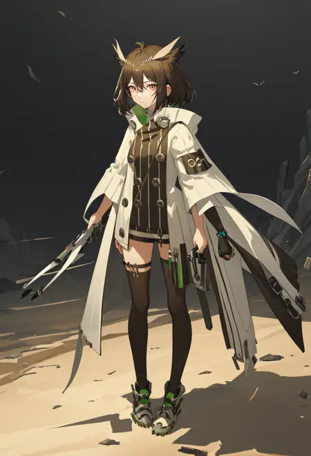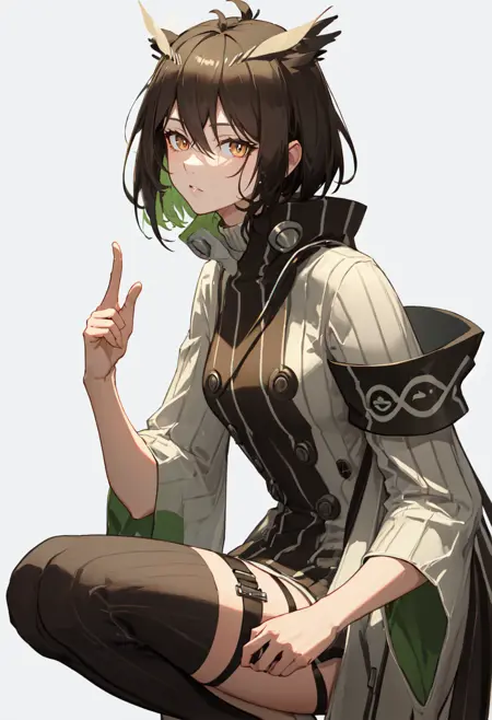 トリガー語は silence_arknights であり、削減されたタグは brown_hair, short_hair, glasses, feather_hair, owl_ears, semi-rimless_eyewear, brown_eyes, hair_between_eyes, under-rim_eyewear です。ある特徴(例:髪の色)が時々安定しない場合、これらをプロンプトに追加してください。