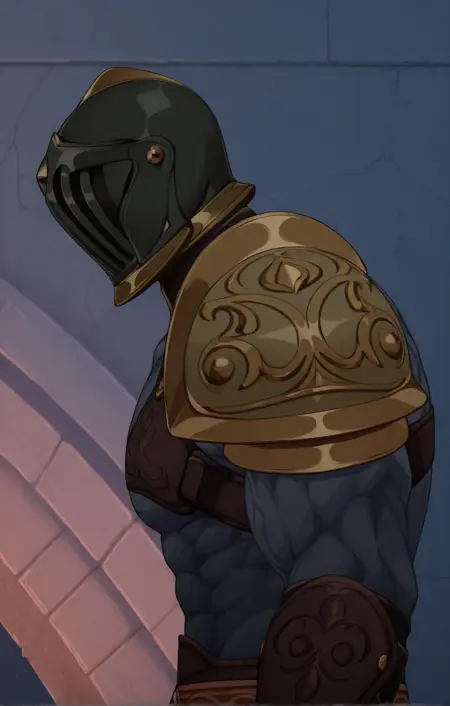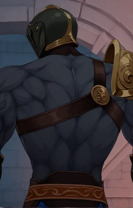 アーマー、肩アーマー、手甲、片側のパウルドロン、前腕アーマー、ベルト、黒いパンツ、サンダル、ブーツ、腹筋、胸筋、